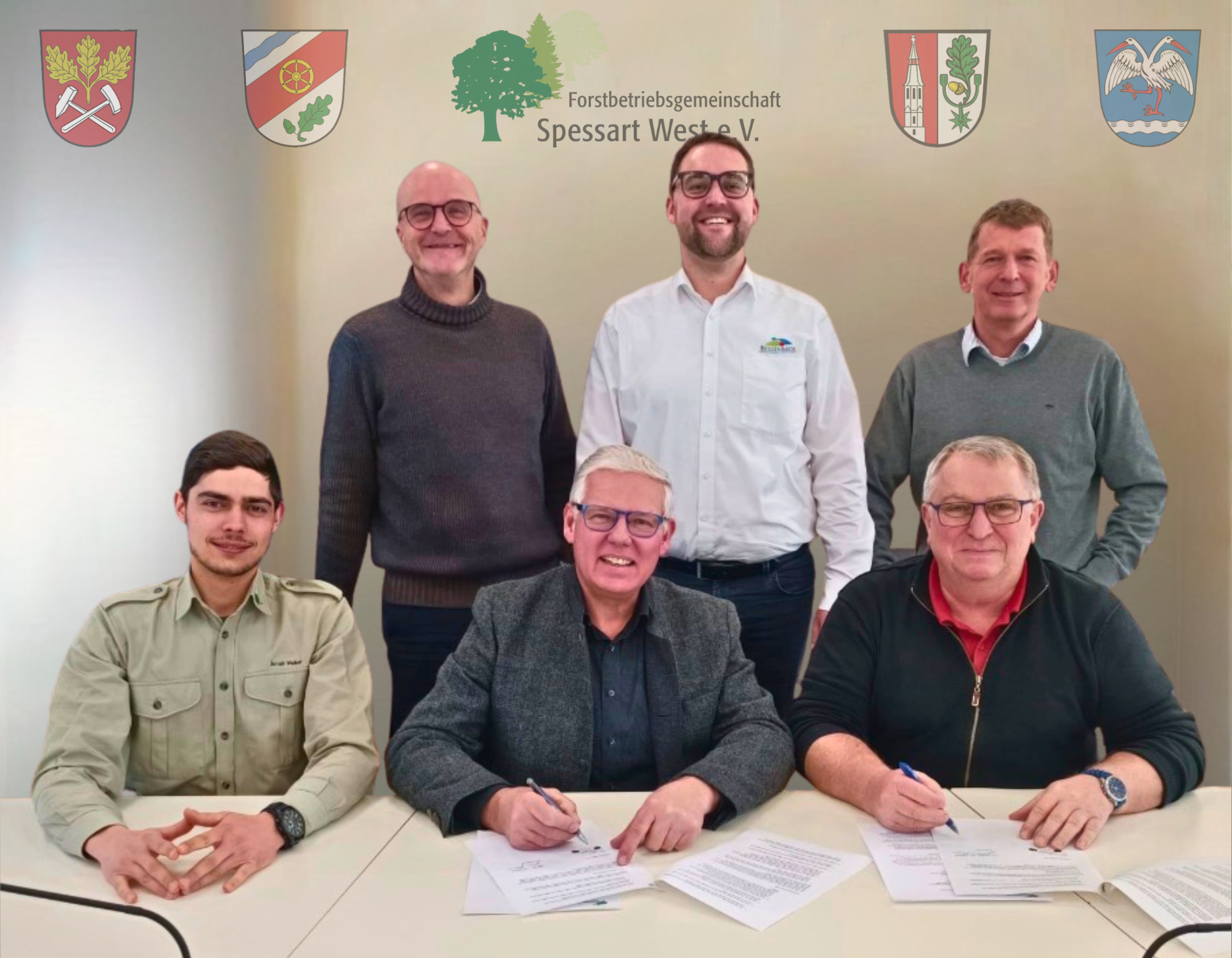 Nach mehreren Besprechungen mit den Verwaltungsspitzen der Kommunen Bessenbach, Hösbach, Laufach und Sailauf und der Beschlusseinholung der jeweiligen Gemeinderäte bzw. des Vereinsvorstands der Forstbetriebsgemeinschaft Spessart- West e.V. wurden die Beitrittserklärungen durch die Gemeinden der bereits bestehenden Waldarbeitsgemeinschaft in engem Kreis unterzeichnet.